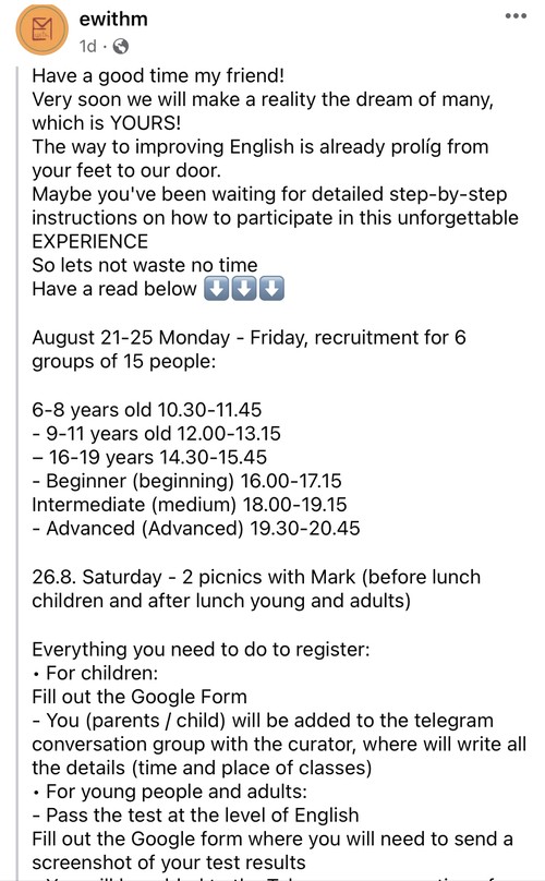The New Life Church in Slovakia has started advertising the English Club on Facebook. They're calling it "English with Mark". Here are some screenshots.