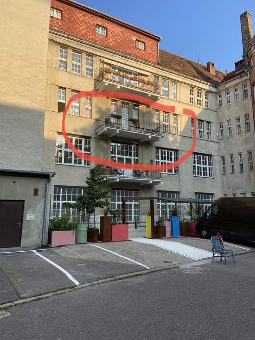 Today we went to the New Life Church to meet the team and do a media check. The church meets in the building in the picture. The circled balcony is theirs. All is well.