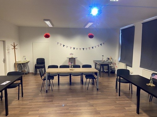 All ready for our first class. The church members did a wonderful job of decorating the room.